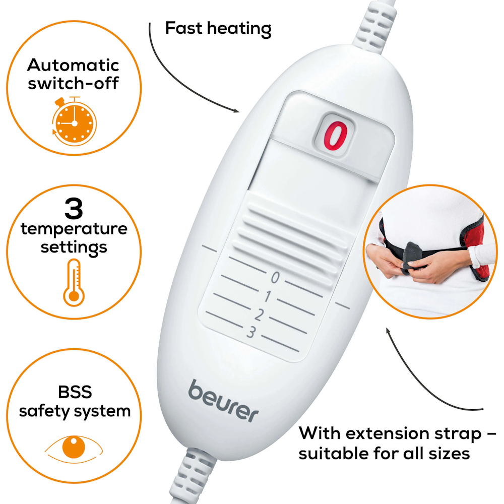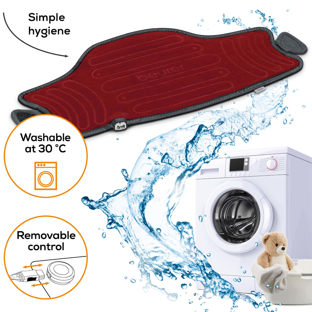 The heat pad can be used for the stomach, back and joints with its easy attachment. It can also be used rolled up as a neck heating cushion. A real all-rounder.