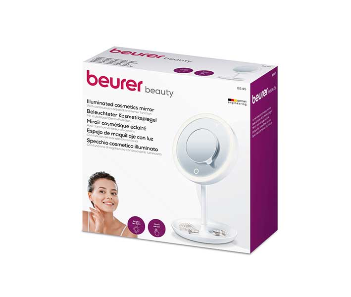 The illuminated cosmetics mirror is perfect for use in your bathroom, as it has an extra-large mirror surface with a magnetic magnification mirror.