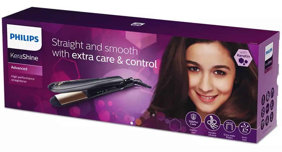 Enjoy style and care with the Philips SilkPro Care technology. Plates smoother than silk glide through your hair with optimized temperature, minimizing friction and resulting in less heat exposure. For beautifully straightened silky smooth hair.