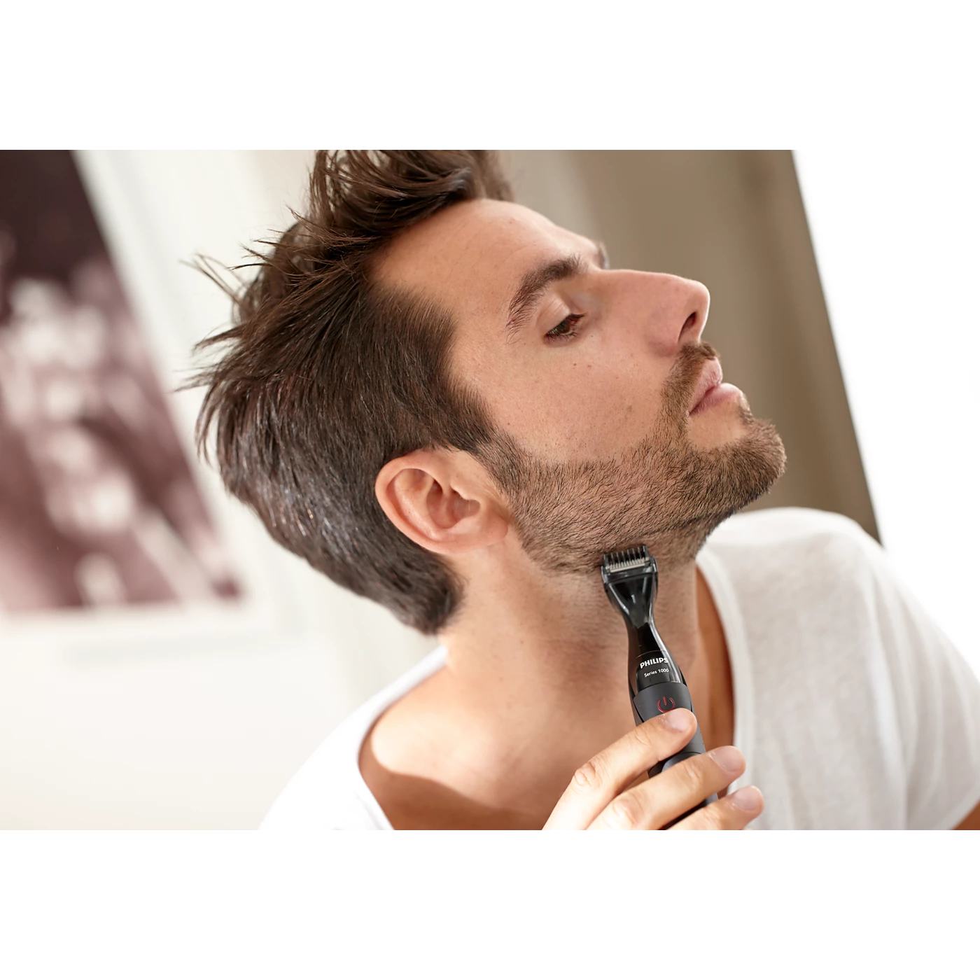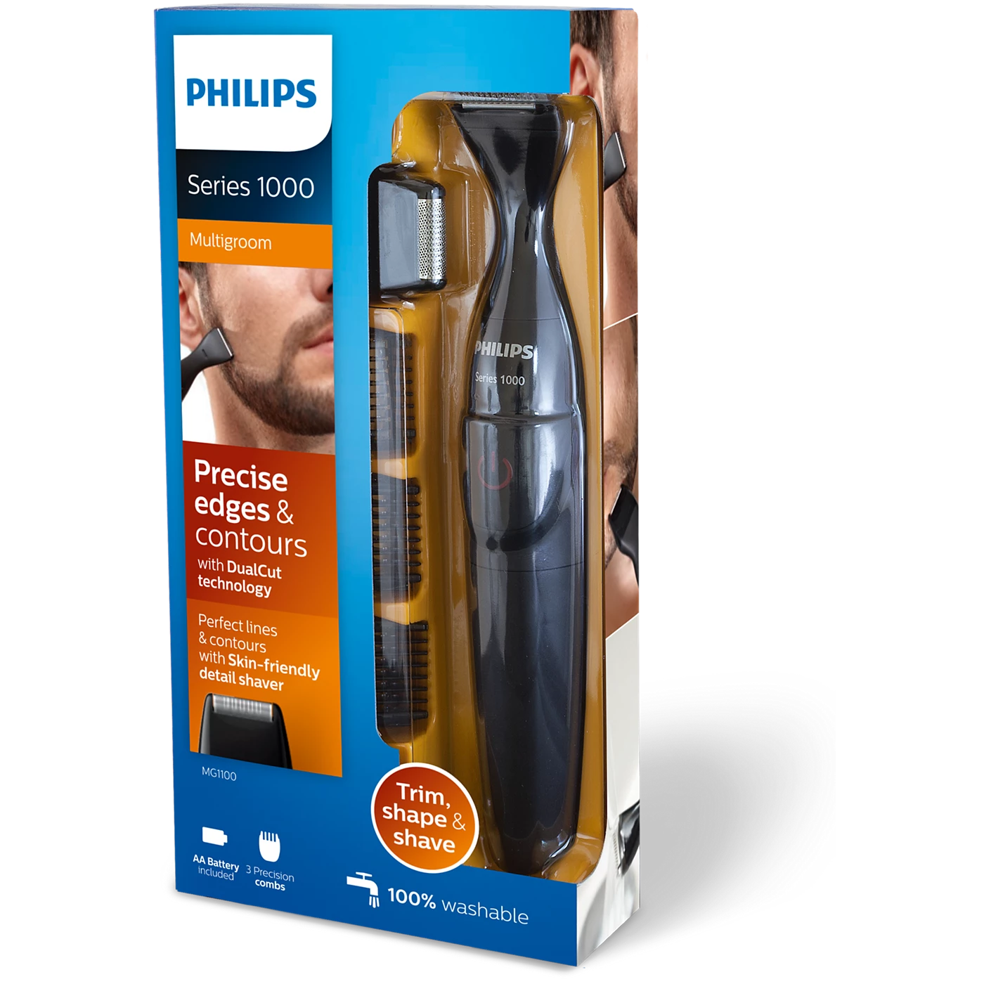 The 21-mm precision trimmer helps you trim evenly and shape your facial style (stubble, goatee, sideburns, neckline or moustache) with great control and visibility.