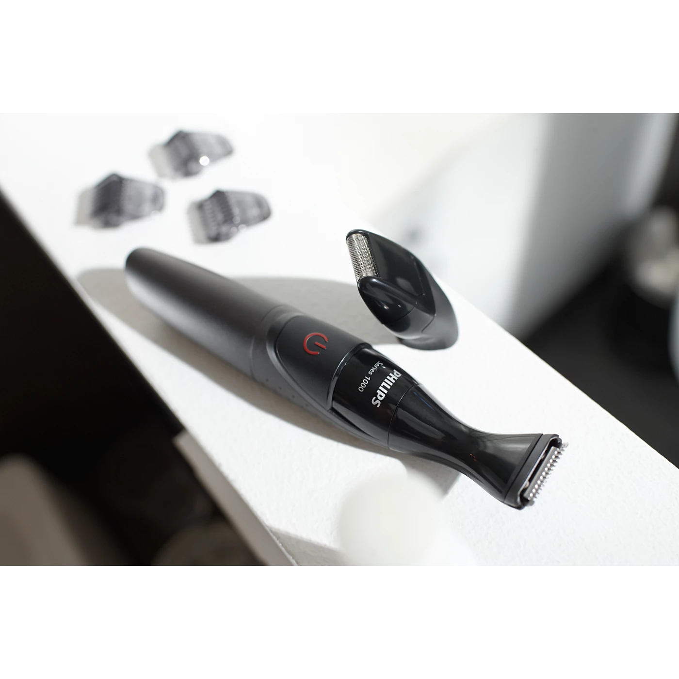 Trim and maintain the uniform length of your stubble, beard, goatee, sideburns and moustache with the 1-mm, 3-mm and 5-mm click-on precision combs.