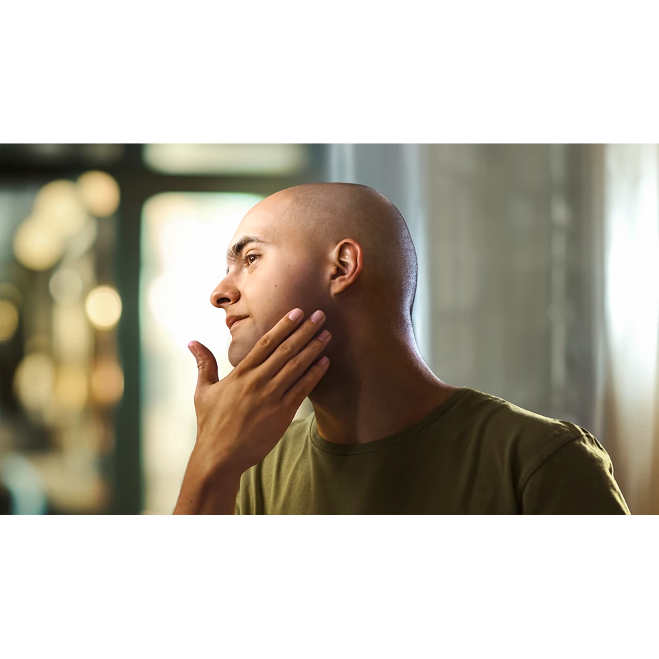 By flexing and pivoting in five directions, the head follows every curve of your face cutting just above skin level for a clean, comfortable shave even on sensitive skin.
